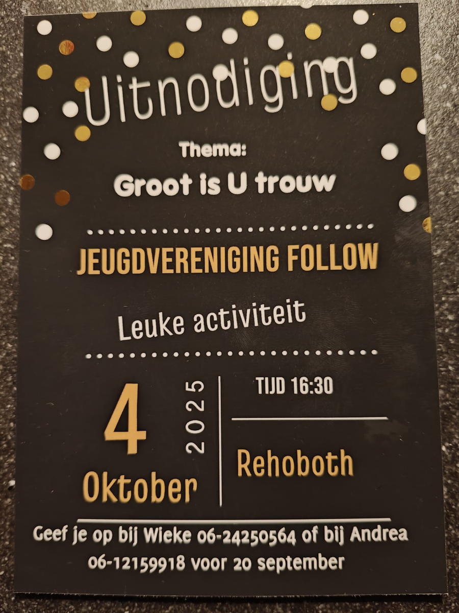Praktisch, Follow is gericht op jongeren van rond de 13 tot en met 16 jaar en komt om de twee weken samen op vrijdag rond 19:30 uur in het jeugdhonk van Rehobôth.